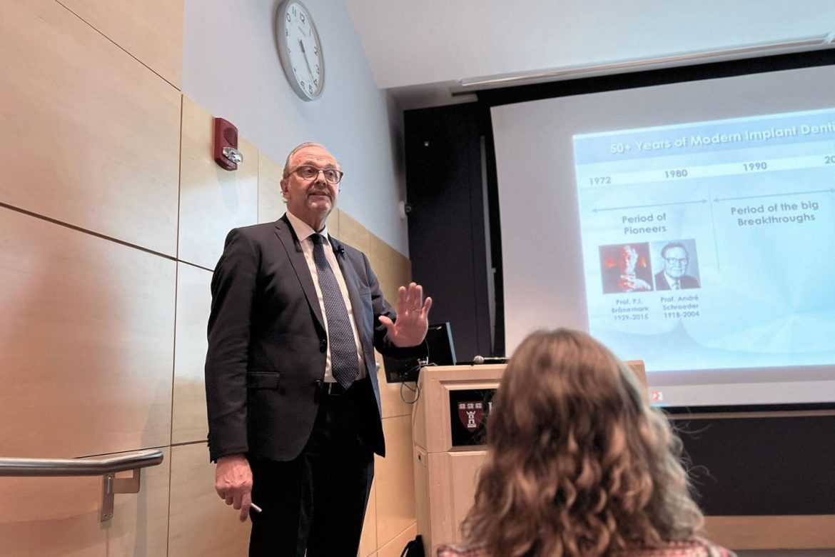 Celebrating 40 years of progress in the field of dental implant surgery, the Harvard School of Dental Medicine honored Daniel Buser — University of Bern Professor and Harvard visiting lecturer — with the Paul Goldhaber Award on Monday. While accepting the honor, the most prestigious granted by the Dental School, the renowned dental surgeon gave an address that spanned both his academic career and the advances in the field, four decades “of pioneers and big breakthroughs.”